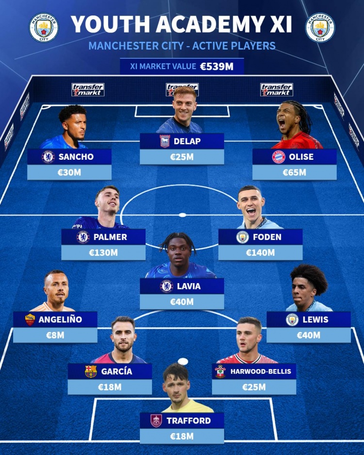 曼市雙雄&紅軍各自青訓最佳陣:帕爾默、福登、桑喬、斯特林在列