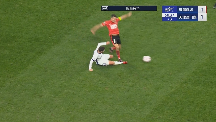 蓉城少打一人!周定洋踩中哈達斯小腿,主裁看VAR后出示直紅!