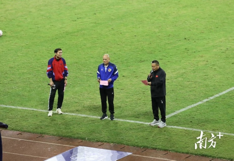 王惠良、池明華、謝育新三位名宿現(xiàn)身球場,為梅州客家加油助威