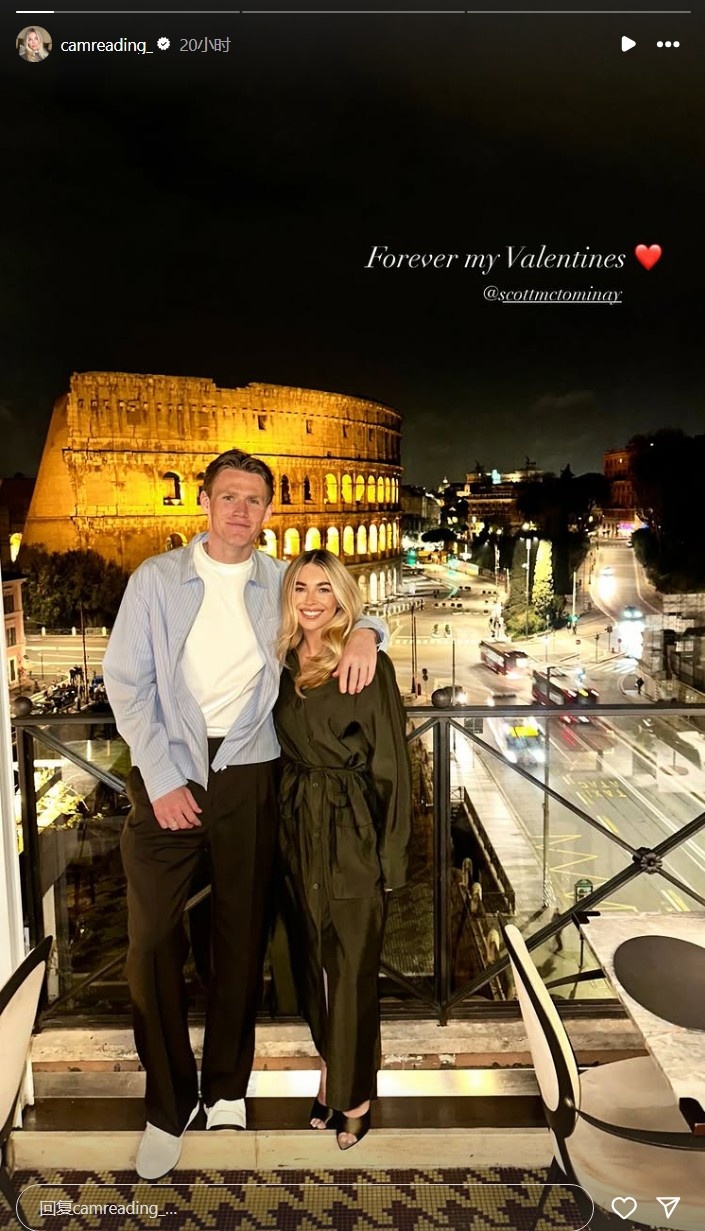 2月15日訊 麥克托米奈的女友卡姆-雷丁昨天在Instagram曬兩人合照,慶祝情人節(jié)。卡姆-雷丁曬出了兩人在意大利的合照,@了麥克托米奈并配文:“永遠(yuǎn)是我的情人。”