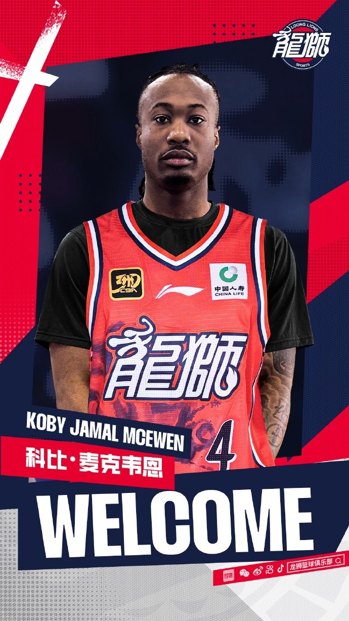 官方 | 歡迎科比·麥克韋恩加入廣州龍獅龍獅籃球俱樂部宣布:俱樂部與加拿大籍球員科比·麥克韋恩(Koby Mcewen) 正式簽約,待CBA公司審核、公示通過后,麥克韋恩將身披廣州朗肽海本隊4號戰袍開
