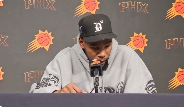 3月5日訊 NBA常規(guī)賽,太陽119-117險勝快船,杜蘭特賽后接受了媒體采訪。談到隊友、本場比賽的逆轉(zhuǎn)功臣吉萊斯皮,杜蘭特表示:“我一直很欣賞吉萊斯皮的沉穩(wěn)和斗志,他是那種真正在乎勝負(fù)的人,他是更衣