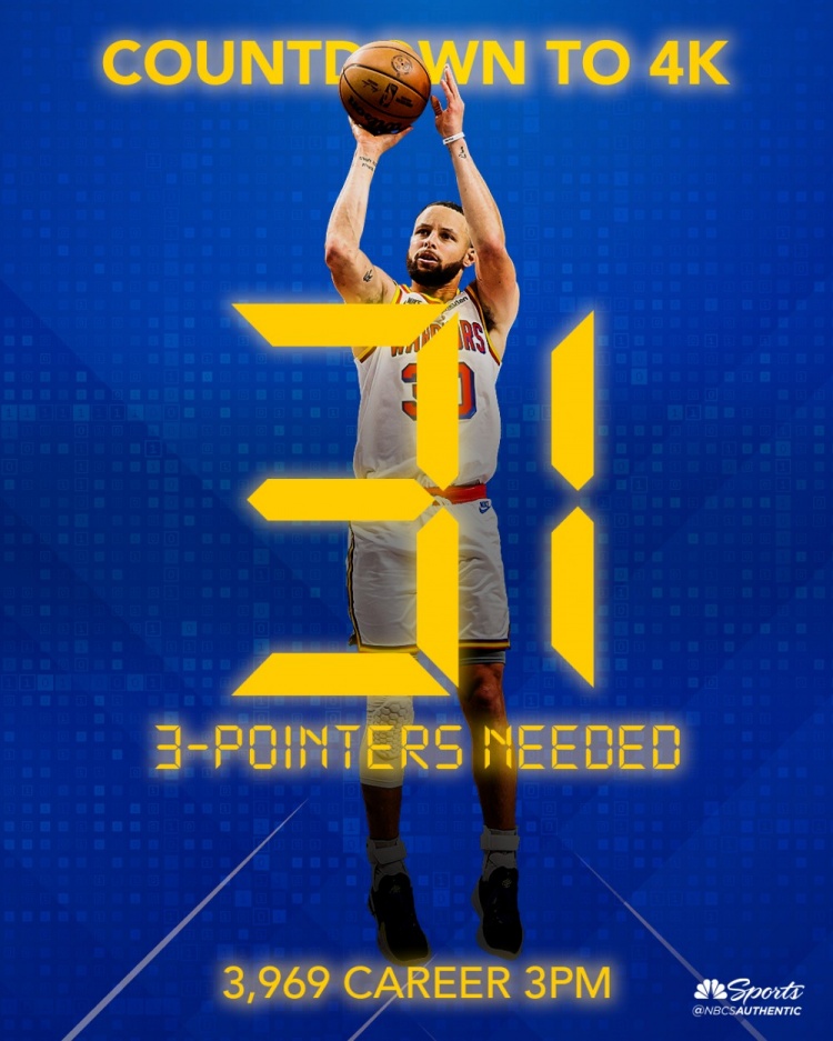 ?神跡將成!庫里生涯三分命中數達3969 距離4000大關還差31記