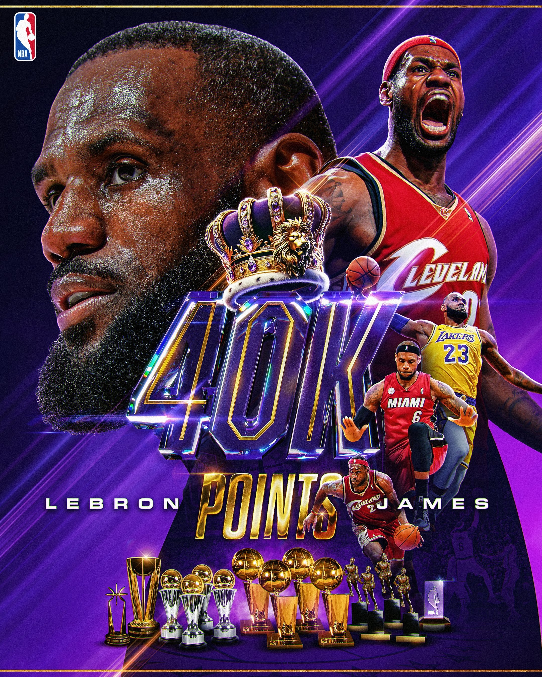 3月3日訊 去年今日,湖人球星勒布朗-詹姆斯生涯總得分突破40000,NBA歷史首人。