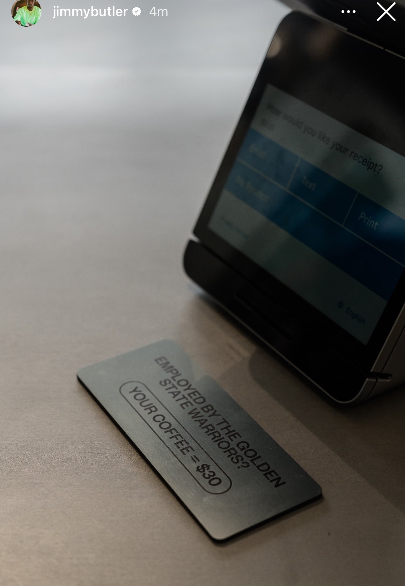 巴特勒還給勇士工作人員送上了“折扣價”——如果你是勇士員工,那么你的咖啡只要30刀一杯。