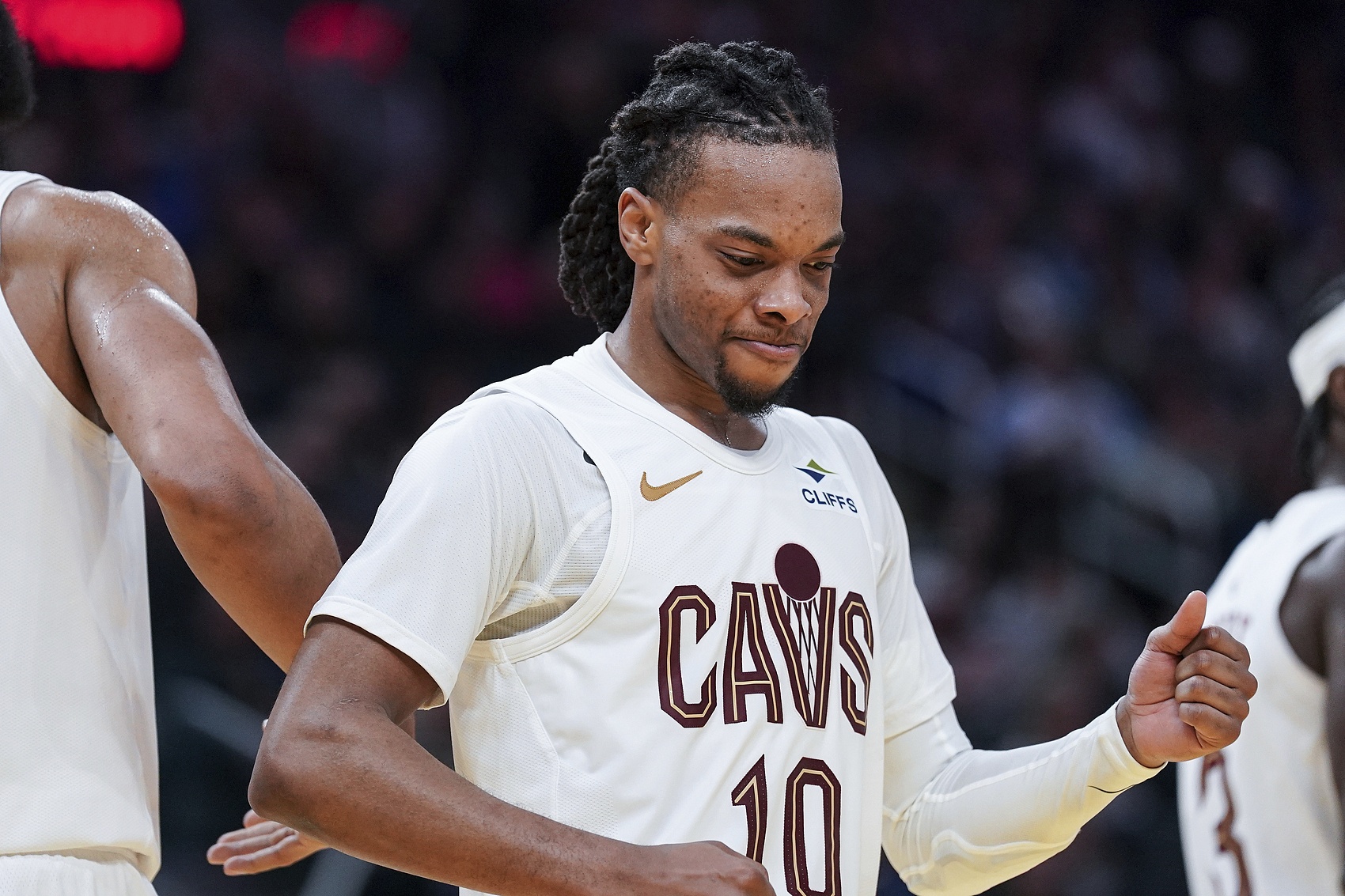 去年,挫折再次襲來。一系列傷病困擾接踵而至:包括頭部受傷、腰部疼痛反復發作,以及下巴骨折不得不接受手術。加蘭缺席了19場比賽,在下巴被固定期間,他只能通過吸管進食。在場外,他還經歷了祖母的離世,承受著巨大的悲痛。即便如此,他依然能場均貢獻18.0分6.5次助攻,三分球命中率37.1%,幫助騎士隊打進了分區半決賽。