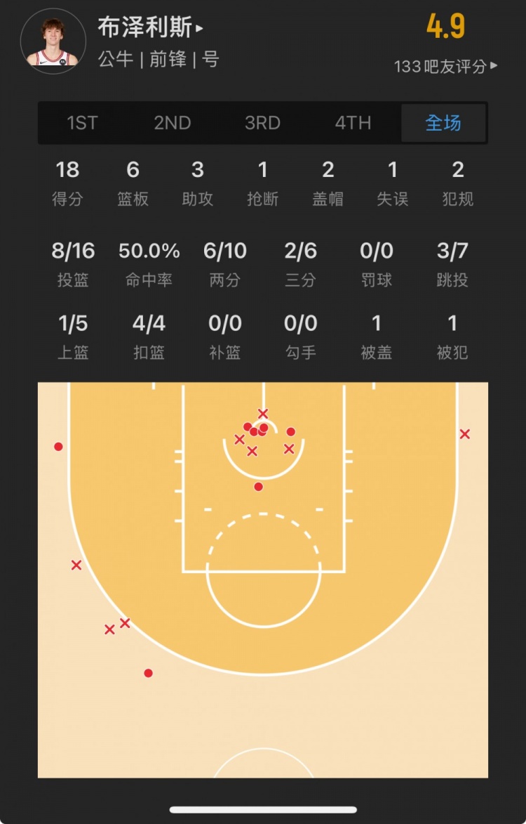 公牛11號秀 馬蒂斯-布澤利斯 登場30.2分鐘