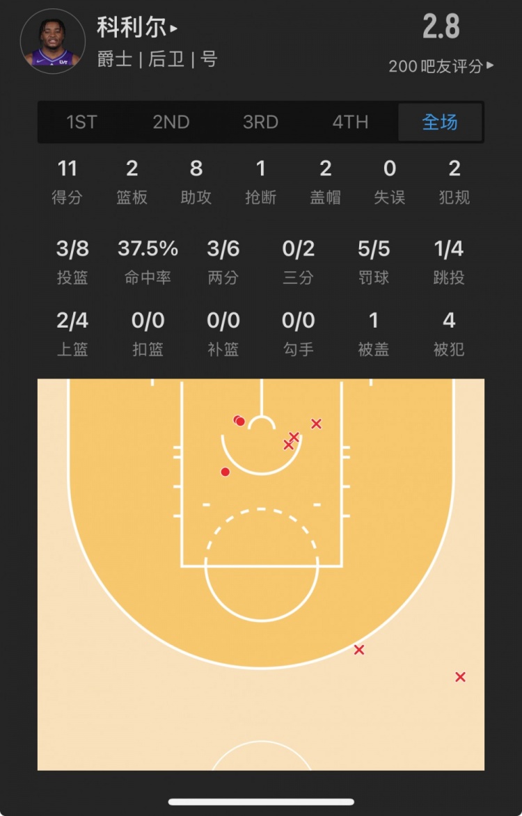 爵士29號秀 以賽亞-科利爾 登場28.9分鐘