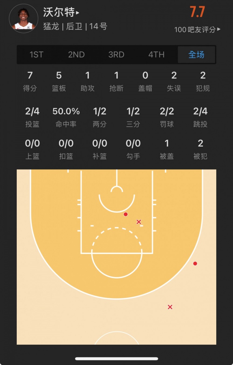 猛龍19號秀 賈科比-沃爾特 登場30.8分鐘