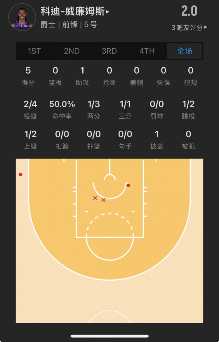 爵士10號秀 科迪-威廉姆斯 登場17.3分鐘