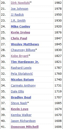 小小里程碑!米切爾生涯三分1608平理查德森 排名歷史第40&現役20