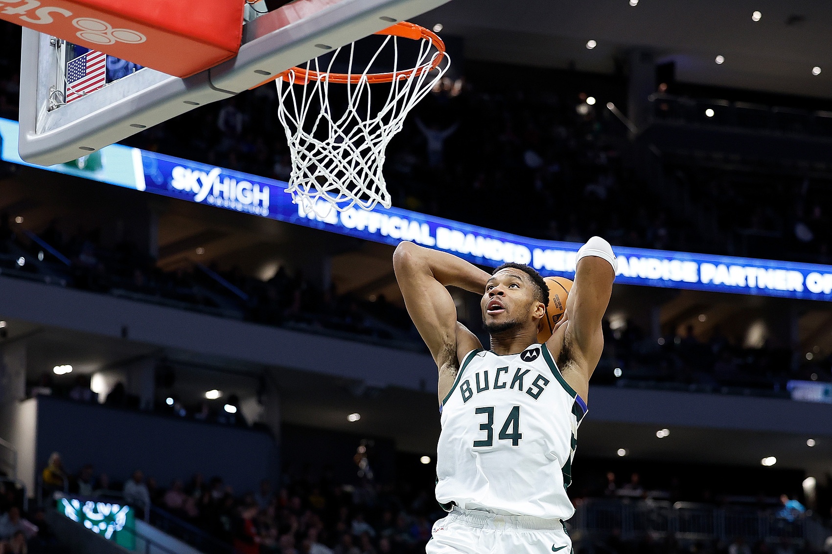 字母哥出戰(zhàn)24分50秒,20投13中、罰球6中6,砍下32分15籃板4助攻1搶斷,出現(xiàn)3次失誤,正負值為全場最高的+30。