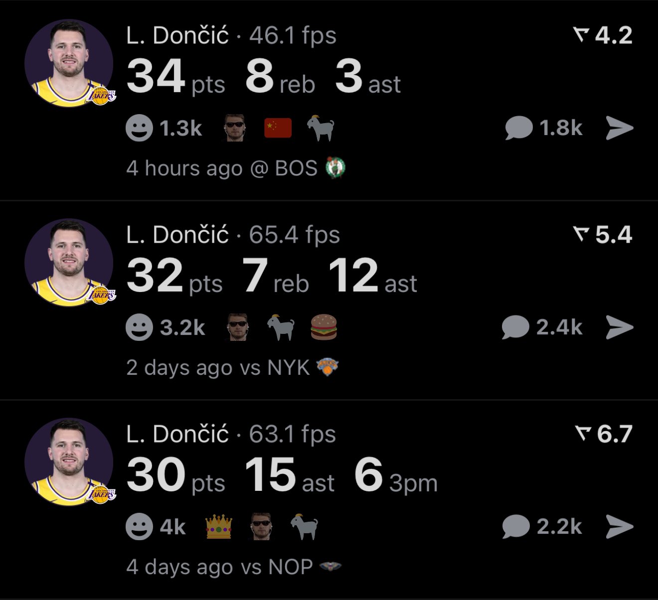 數據顯示,東契奇(26歲零9天)是2004年科比(25歲零218天)之后拿下三連30+最年輕的湖人球員。