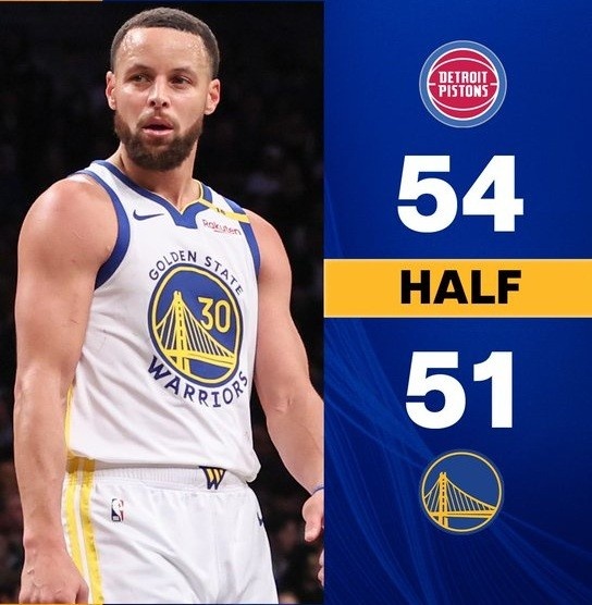3月9日訊 NBA常規(guī)賽今天繼續(xù)進行,勇士在主場迎戰(zhàn)活塞。半場結束時,勇士51比54落后。