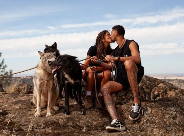 很快,人們就知道了他的夢想是什么。兩個月后,安佳麗在網上曝出了自己和蘭姆的合照官宣戀情,兩人卿卿我我,身邊還有三匹狗化的狼。可以想象,至少在發展聯盟期間,蘭姆就和安佳麗墜入了愛河。