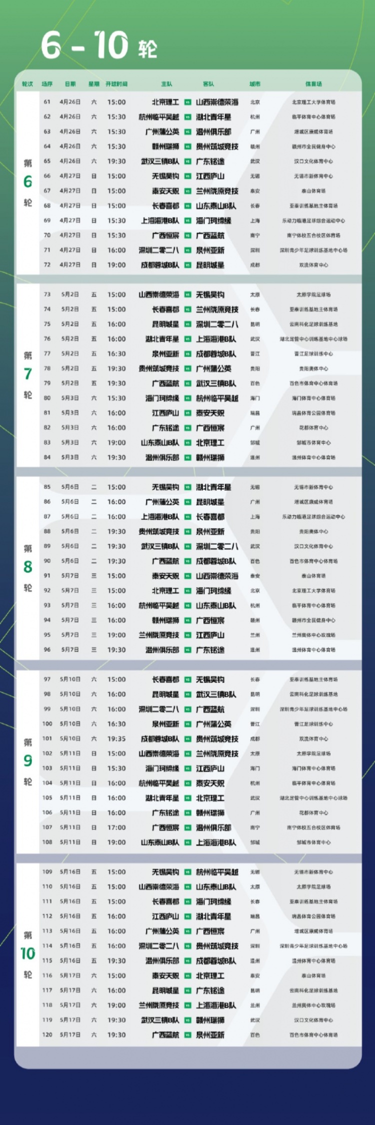 3月14日訊 中乙官方公布新賽季預賽階段賽程,共進行22輪264場比賽。