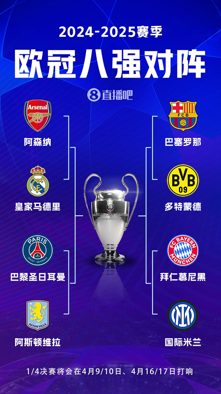 目前阿森納、維拉仍在征戰本賽季歐冠,熱刺、曼聯身處歐聯,切爾西則位居歐協聯8強,是奪冠大熱門。