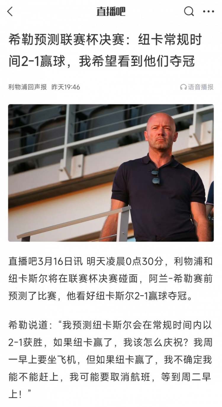 小嘴開了光!希勒賽前精準預測:紐卡常規時間2-1贏利物浦?