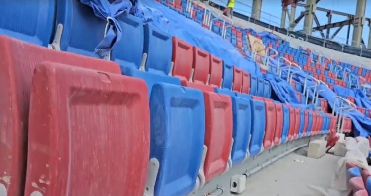 照片可以看到草坪區(qū)域的改造情況和前兩層看臺大量座椅的安裝進度。此外,巴薩已在一層看臺區(qū)域進行了照明測試,新球場將在看臺上方安裝LED燈,這些燈光會交替呈現(xiàn)藍色和深紅色,以營造濃厚的巴薩球迷氛圍。