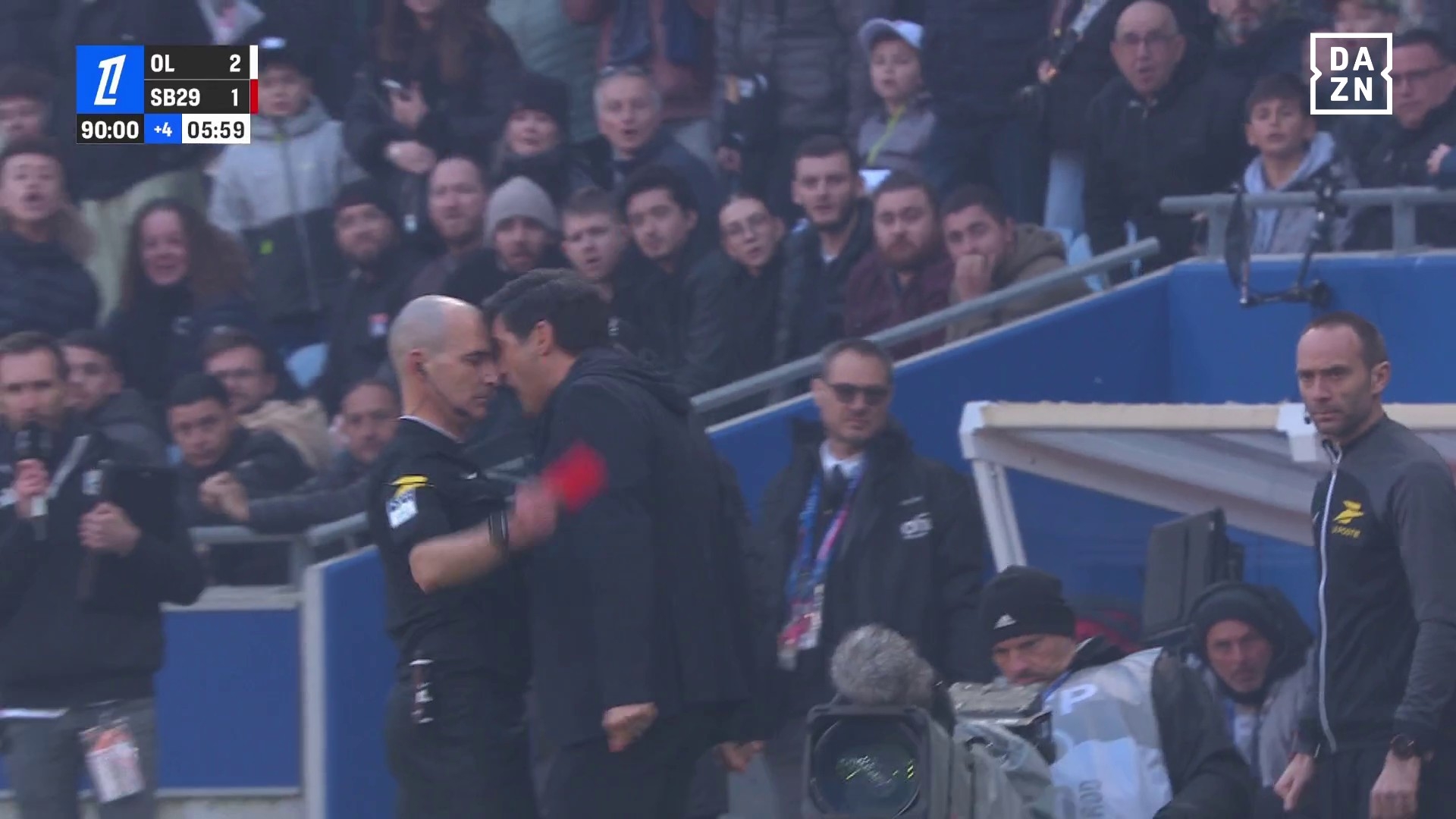 3月3日訊 法甲第24輪,里昂2-1戰勝布雷斯特,比賽中里昂主教練豐塞卡被出示直紅罰下,在被罰下后,他非常憤怒的與裁判頂牛,并且怒噴裁判。