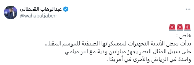 該媒體人寫(xiě)道:一些俱樂(lè)部已經(jīng)開(kāi)始為下賽季的夏季季前賽做準(zhǔn)備。例如,利雅得勝利準(zhǔn)備與邁阿密?chē)?guó)際進(jìn)行兩場(chǎng)友誼賽,一場(chǎng)在利雅得,一場(chǎng)在美國(guó)。