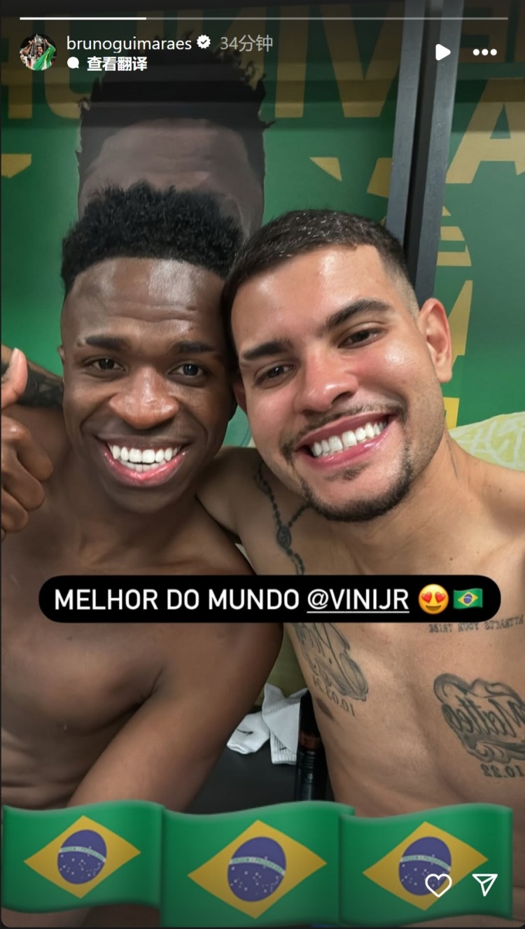 吉馬良斯社媒曬出與絕殺功臣維尼修斯的合照,并配文:“世界最佳,維尼修斯。”