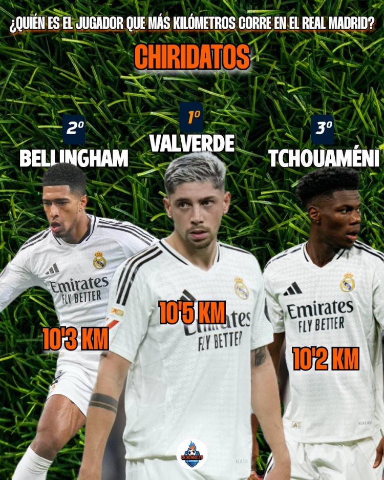 巴爾韋德本賽季場(chǎng)均跑動(dòng)10.5km皇馬隊(duì)內(nèi)最多,貝林瓊阿梅尼二三位?