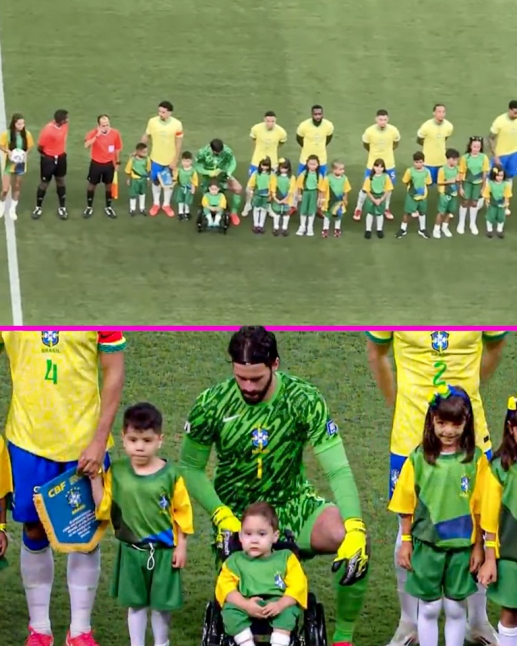 此役阿利森擔任巴西隊首發(fā)門將,他在賽前列隊奏國歌時單膝跪地,以照顧身前坐輪椅的球童,避免身高差太大。
