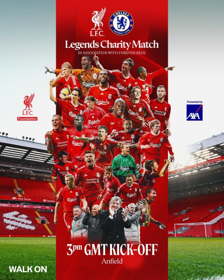 3月22日訊 利物浦傳奇隊將在安菲爾德的慈善賽中對陣切爾西傳奇隊,利物浦官方社媒曬出海報,預熱這場比賽。