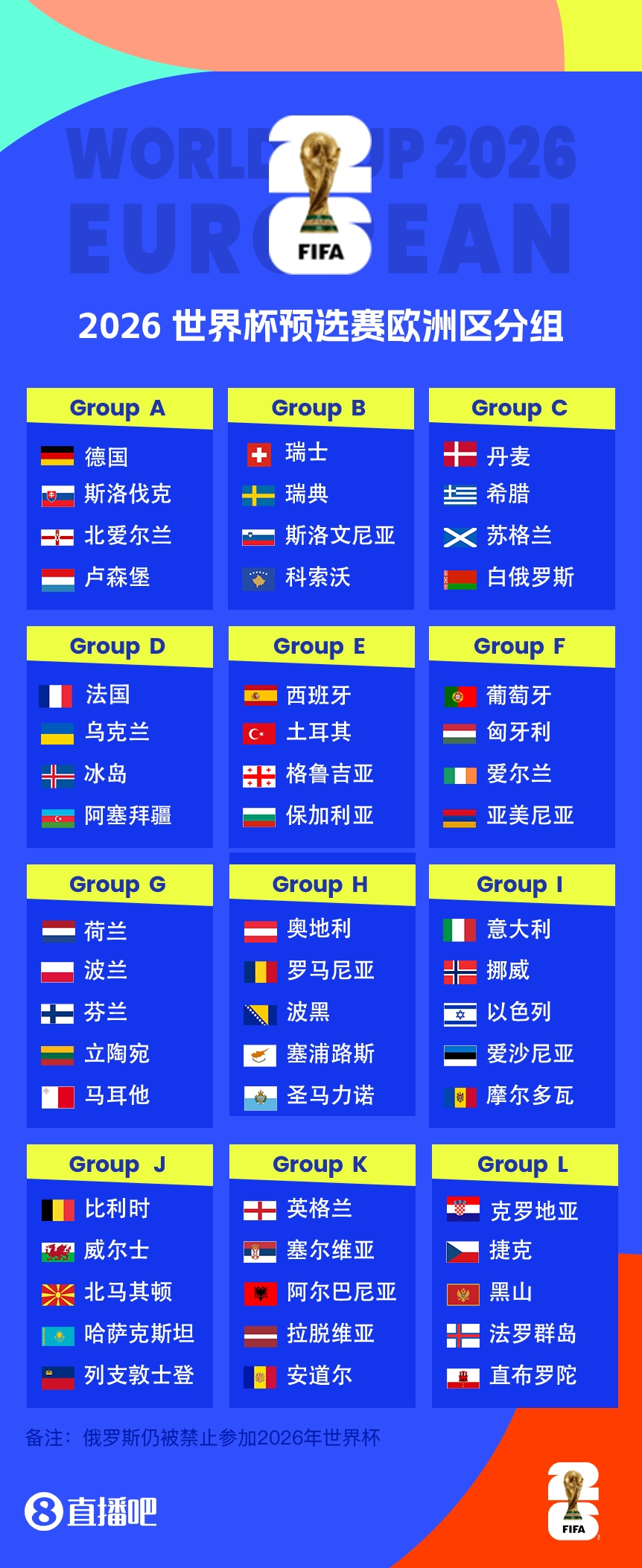 2026世界杯歐洲區(qū)預(yù)選賽分組: