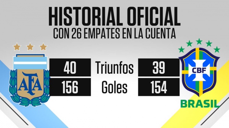 據ESPN統計,阿根廷與巴西交手105次,阿根廷戰績40勝26平39負,打進156球,丟掉154球。
