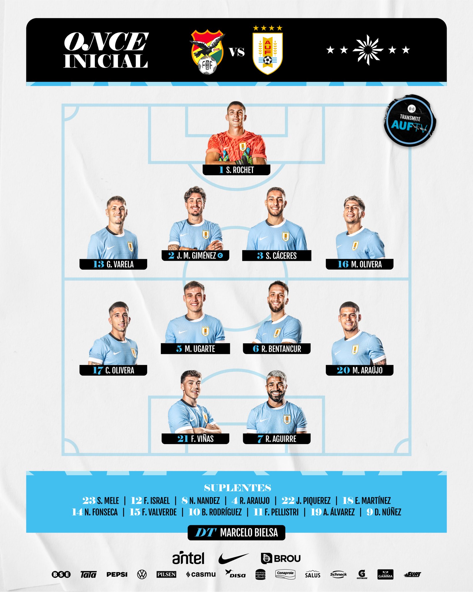 03月26日訊 世預賽南美區第14輪,烏拉圭客戰玻利維亞,賽前首發公布。