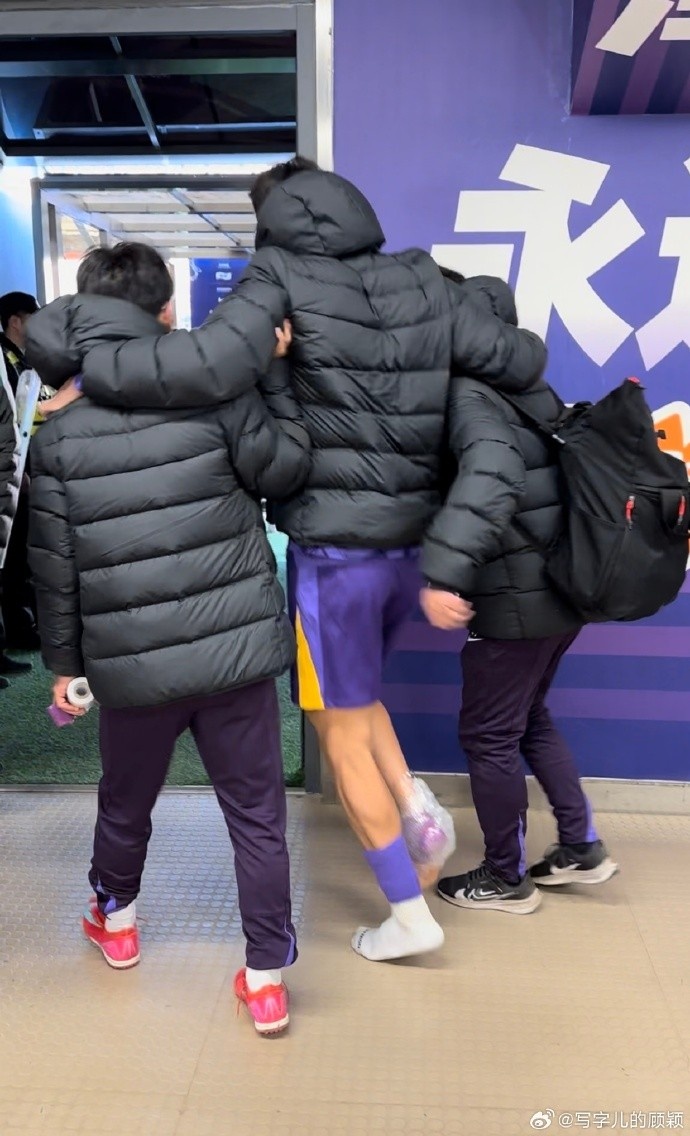 比賽中他去檢查車拍CT時,腳踝已經(jīng)腫了,當時看情形,隊里最擔心的是骨折。影像結(jié)果排除了骨折,意味著最壞的結(jié)果沒出現(xiàn),指向比較復(fù)雜的韌帶問題,但是到底有多嚴重,需要核磁共振進一步認定,再制定恢復(fù)方案,而拍核磁大概也要等稍微消腫。估計于指導(dǎo)籠統(tǒng)說“最近幾場無法登場”,也是這個原因?;氐綀龅睾螅_爾瓦多執(zhí)意從擔架車上下來,要返回球場和隊友們在一起(就是這張圖),結(jié)果于指導(dǎo)正好迎面而來,把他攔回休息室了。