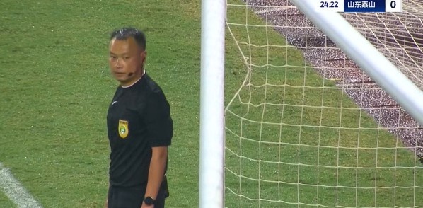 第25分鐘,山東泰山的球網出現問題,比賽因此暫停一小會。↓