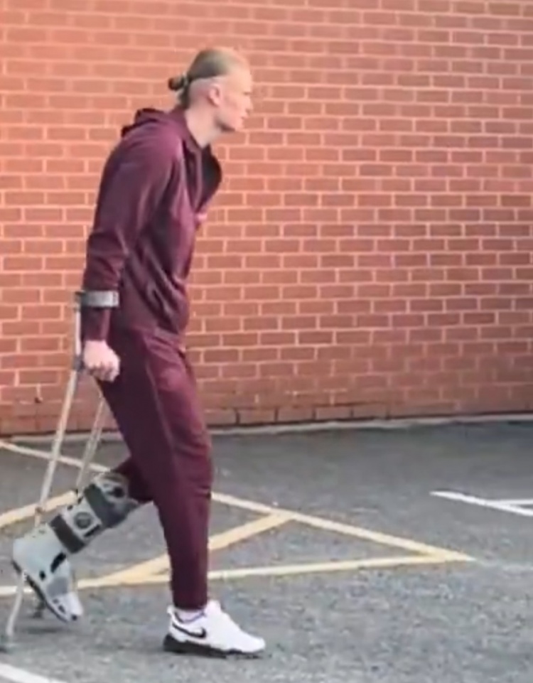 據悉,哈蘭德離開球場時看起來沒有表現出痛苦,但他拄著拐杖,左腿穿著防護靴行走。