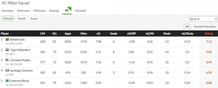 一組數據可很好的證明這個問題:普利西奇在來到2月后,個人比賽評分過7.5的只有一次(2-0恩波利);賴恩德斯在近8場比賽中的威脅相比過去小了很多,只收獲了1個進球(1-2都靈);希門尼斯雖然數據表現上看起來還算不錯,可是賽后評分只有6.9的均分,且多項數據比荷甲時有了下滑,這也是不爭的事實。