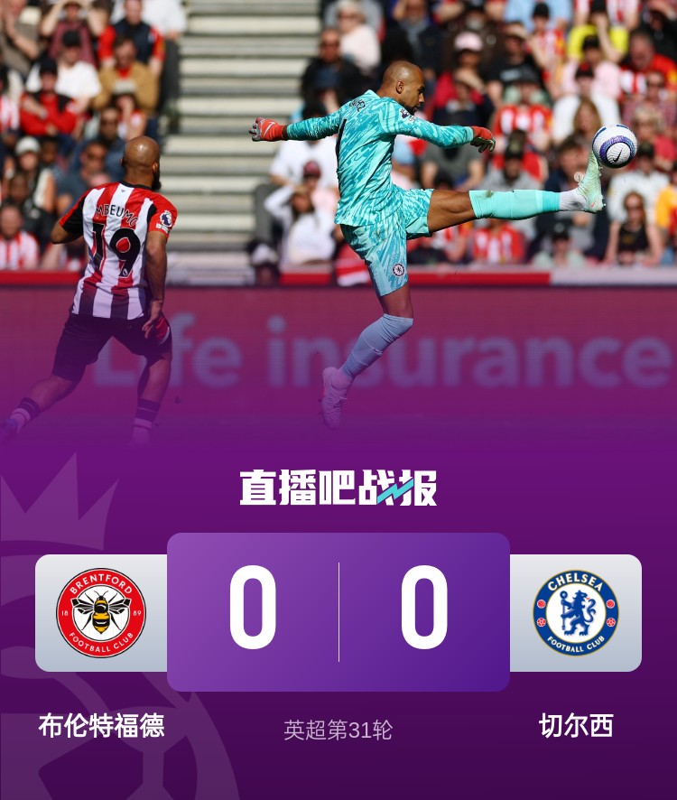 切爾西0-0布倫特福德無緣連勝仍第四 藍軍21腳射門弗萊肯屢次撲救