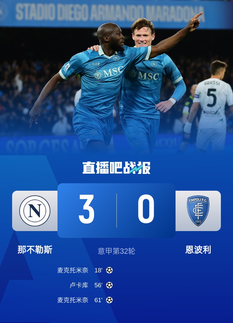 那不勒斯本輪3-0擊敗恩波利,盧卡庫和麥克托米奈聯手制造一場大勝!