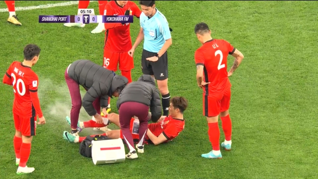 03月04日訊 亞冠精英聯賽東亞區1/8決賽首回合,上海海港vs橫濱水手。比賽第6分鐘,傅歡在一次回傳之后向場邊招手示意隨后倒在場內,似乎是申請換人。