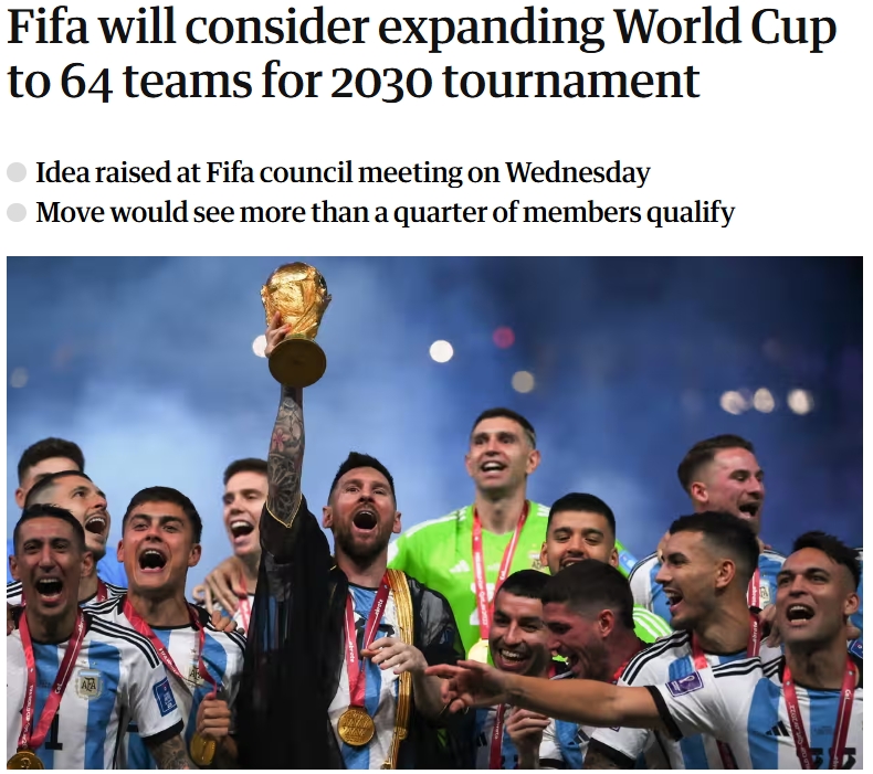 英國《衛報》指出,如果2030世界杯擴軍至64隊,這對各大洲的影響將各不相同。