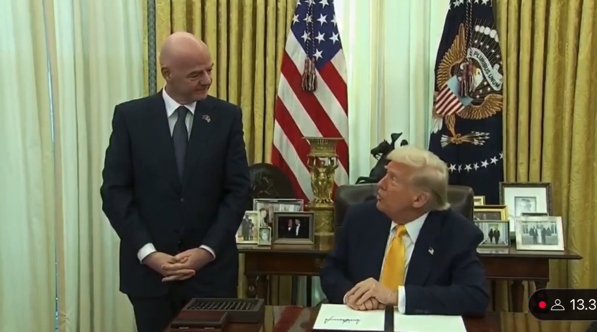 03月08日訊 美國總統特朗普在白宮會見了因凡蒂諾,討論2026年美加墨世界杯的組織事宜。在談話中,特朗普還詢問美國是否有機會奪得世界杯冠軍。