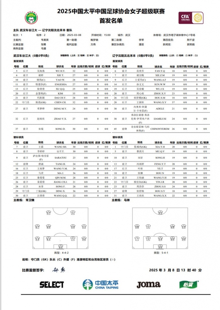 今天下午15:00,武漢車(chē)谷江大將在首輪女超聯(lián)賽主場(chǎng)迎戰(zhàn)遼寧沈陽(yáng)沈北禾豐。身披武漢7號(hào)球衣的王霜,進(jìn)入球隊(duì)比賽名單,但并未進(jìn)入首發(fā)。本場(chǎng)比賽,王霜大概率將迎來(lái)回歸女超聯(lián)賽的首秀。