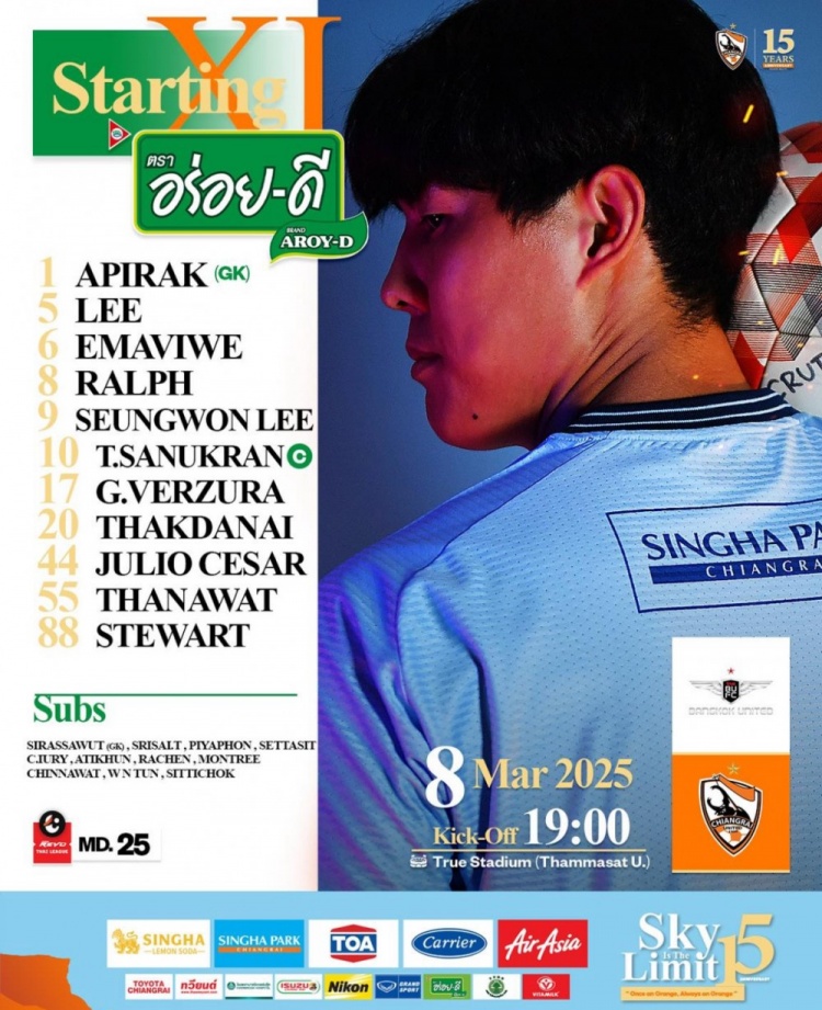 3月8日訊 泰超第25輪比賽,清萊聯將在客場對陣曼谷聯,中國球員郭田雨并未進入比賽名單。