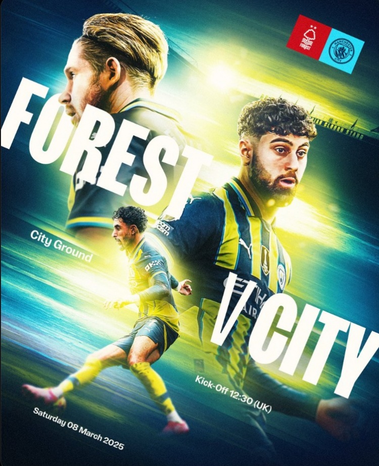 3月8日訊 本輪英超將迎來焦點戰曼城對陣諾丁漢森林,曼城官方也發布海報為本場比賽預熱。