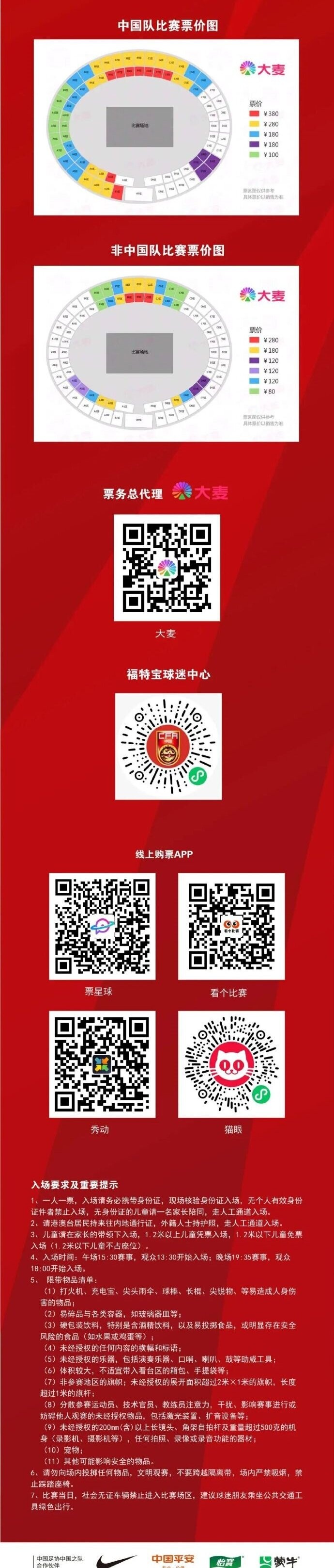 今日(3月10日)17點起賽事門票正式開售!售票平臺包括福特寶球迷中心微信小程序、大麥網、票星球、看個比賽、秀動、貓眼等平臺,具體賽程及詳細票務信息如下。