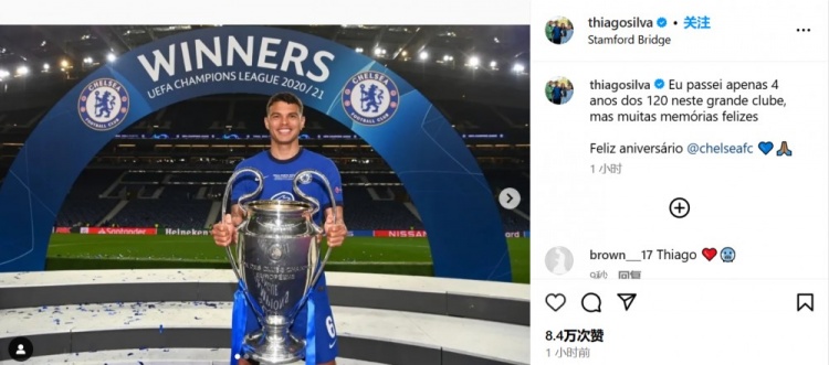 今天是切爾西俱樂部成立120周年的日子,蒂亞戈-席爾瓦曬出他在切爾西效力時的照片,包括歐冠和世俱杯捧杯照,并配文:“這家偉大俱樂部的120年中我只待了4年,但有如此多美好的記憶,生日快樂,切爾西。”