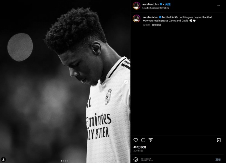 皇馬中場瓊阿梅尼社媒發文悼念逝者:“足球就是生命,但生命超越足球。愿你們安息,卡萊斯、大衛。”