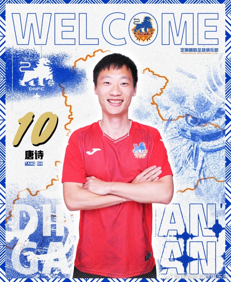 唐詩,1995年5月15日出生,場上司職前衛。唐詩出自魯能足校,技術全面,基本功扎實,職業生涯曾效力于博塔弗戈、貢多馬爾、帕索斯費雷拉、北京國安、廣州隊、北京北體大以及梅州客家。曾兩次隨廣州隊獲得中超冠軍,隨梅州客家沖超成功。2023-2024賽季唐詩效力于黑龍江冰城,曾在保級關鍵戰上演任意球梅開二度幫助黑龍江冰城成功保級。2025賽季,唐詩將身穿10號球衣為定南贛聯效力。