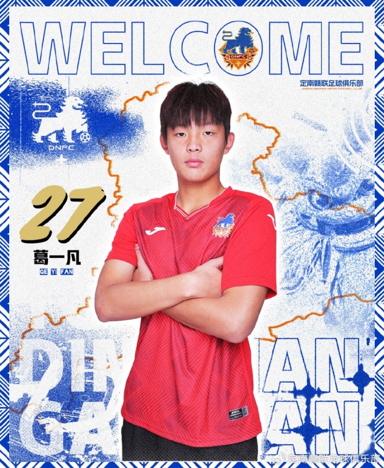 葛一凡,2005年5月11日出生,場上司職守門員。葛一凡曾效力于江蘇蘇寧梯隊、深圳隊梯隊、深圳新鵬城梯隊,2024賽季上調深圳新鵬城一線隊,2025賽季葛一凡租借加盟定南贛聯,將身穿27號球衣為定南贛聯效力。