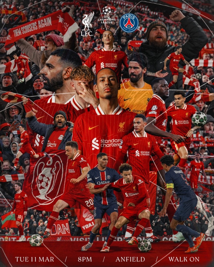 利物浦曬主場對陣巴黎海報,范迪克C位&兩隊多名球員出鏡?